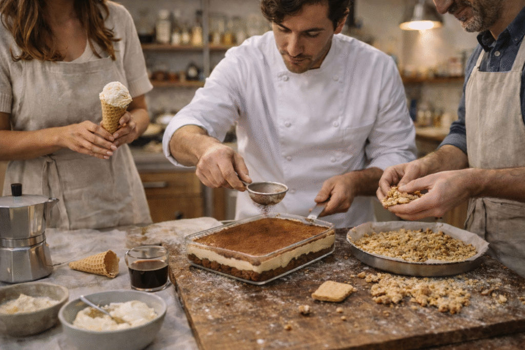 Guests begin by learning the origins and traditions behind each dessert—whether it’s the silky, slow-churned texture of authentic gelato, the crunchy almond-based crumble of Mantua’s famed Sbrisolona, or the layered, velvety richness of classic Tiramisù. Under the chef’s guidance, participants follow step-by-step techniques using fresh, high-quality ingredients, allowing them to recreate these iconic treats long after their time in Italy.